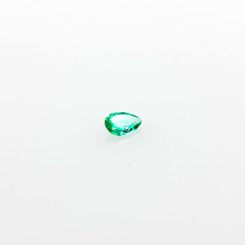 Smeraldo colombiano dal colore verde vivido e brillante definito bluish green, uno tra i più ricercati per la sua particolare luminosità. Dal particolare ed insolito taglio a goccia.
